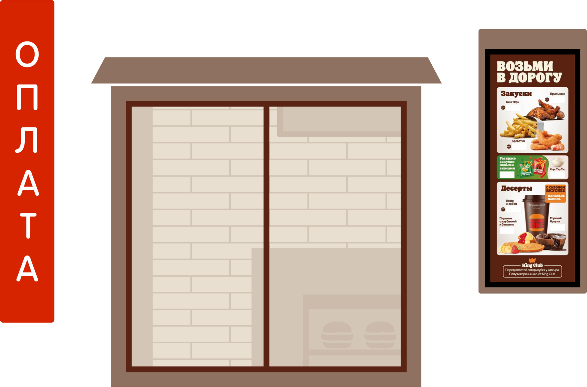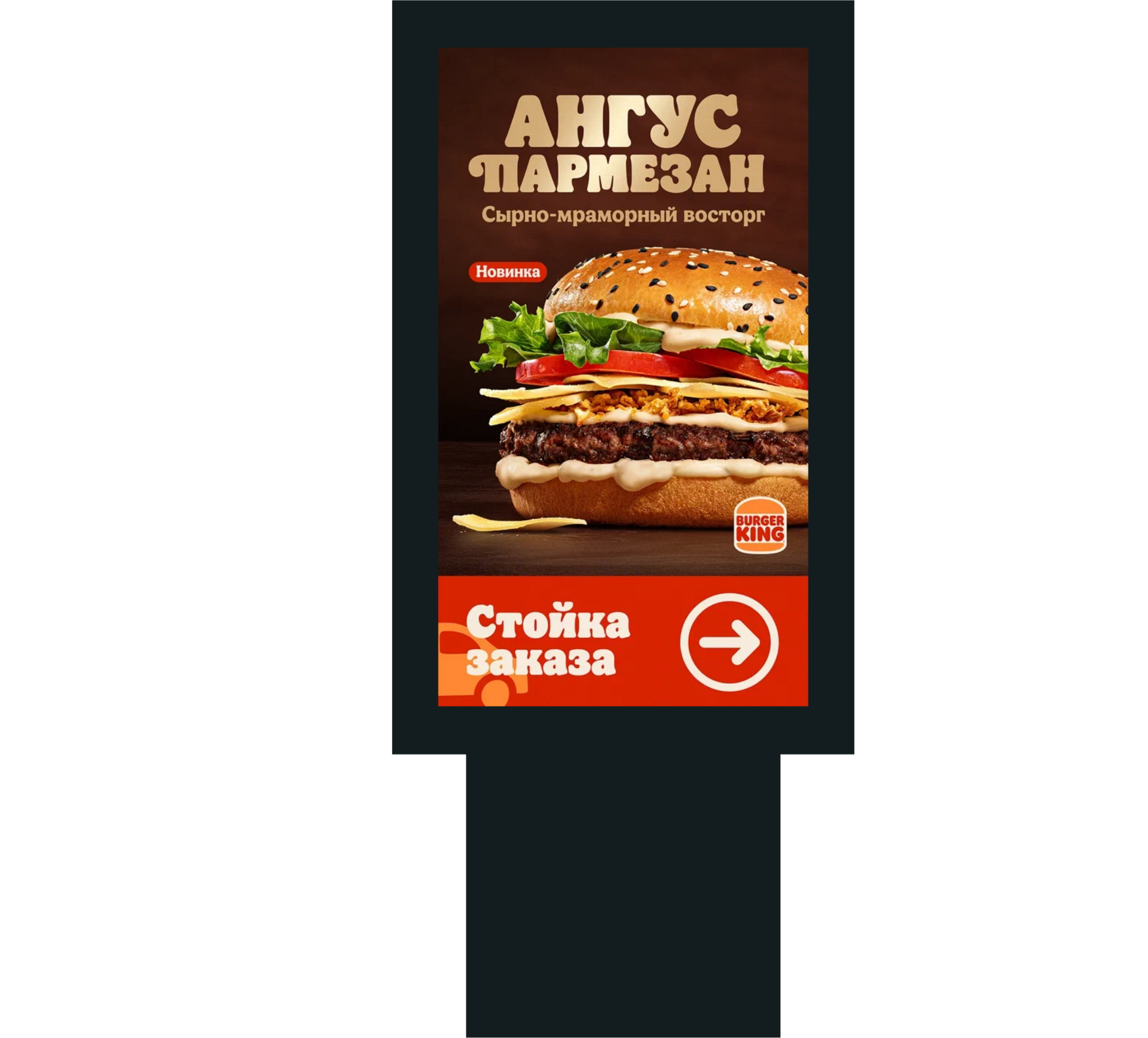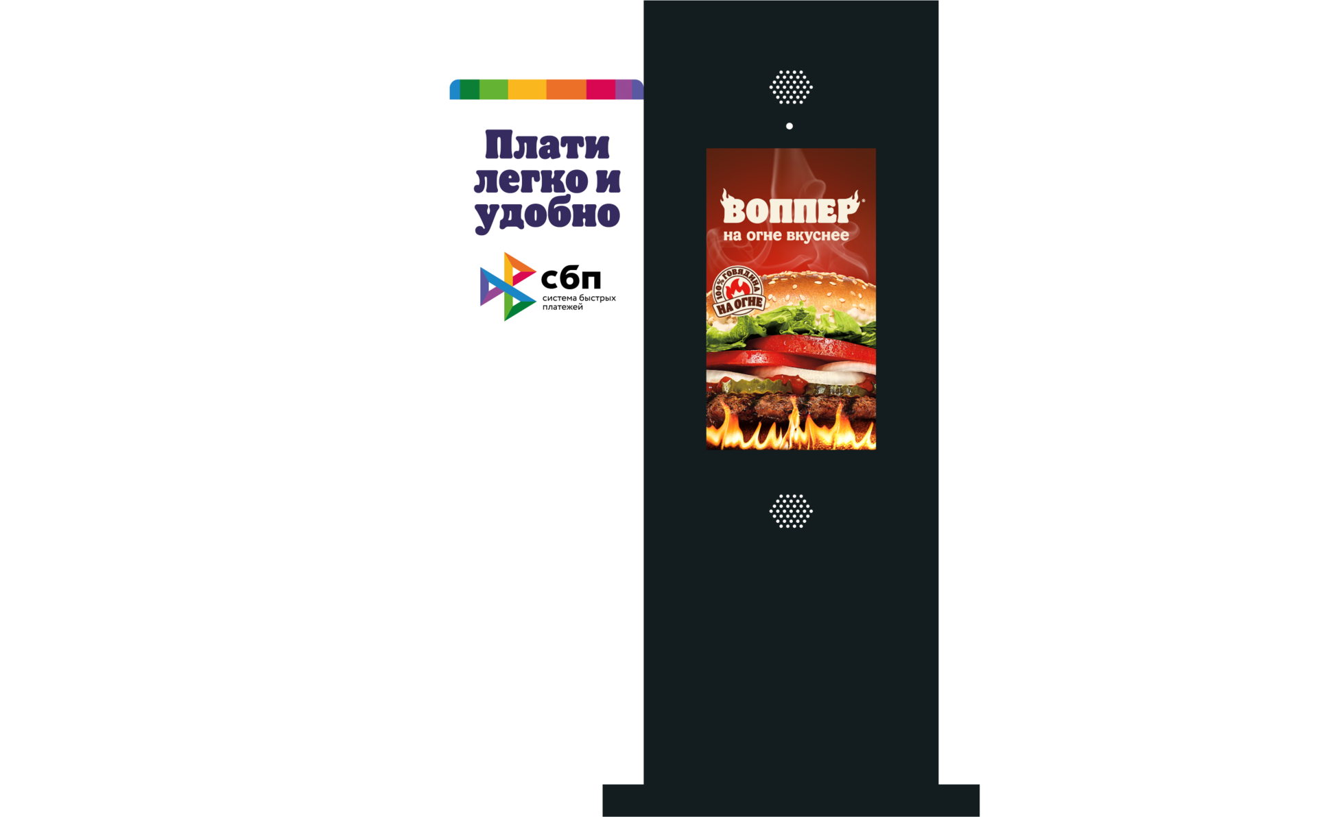 Стойка заказа оборудована микрофоном, динамиком и экраном для приёма и отображения заказа.