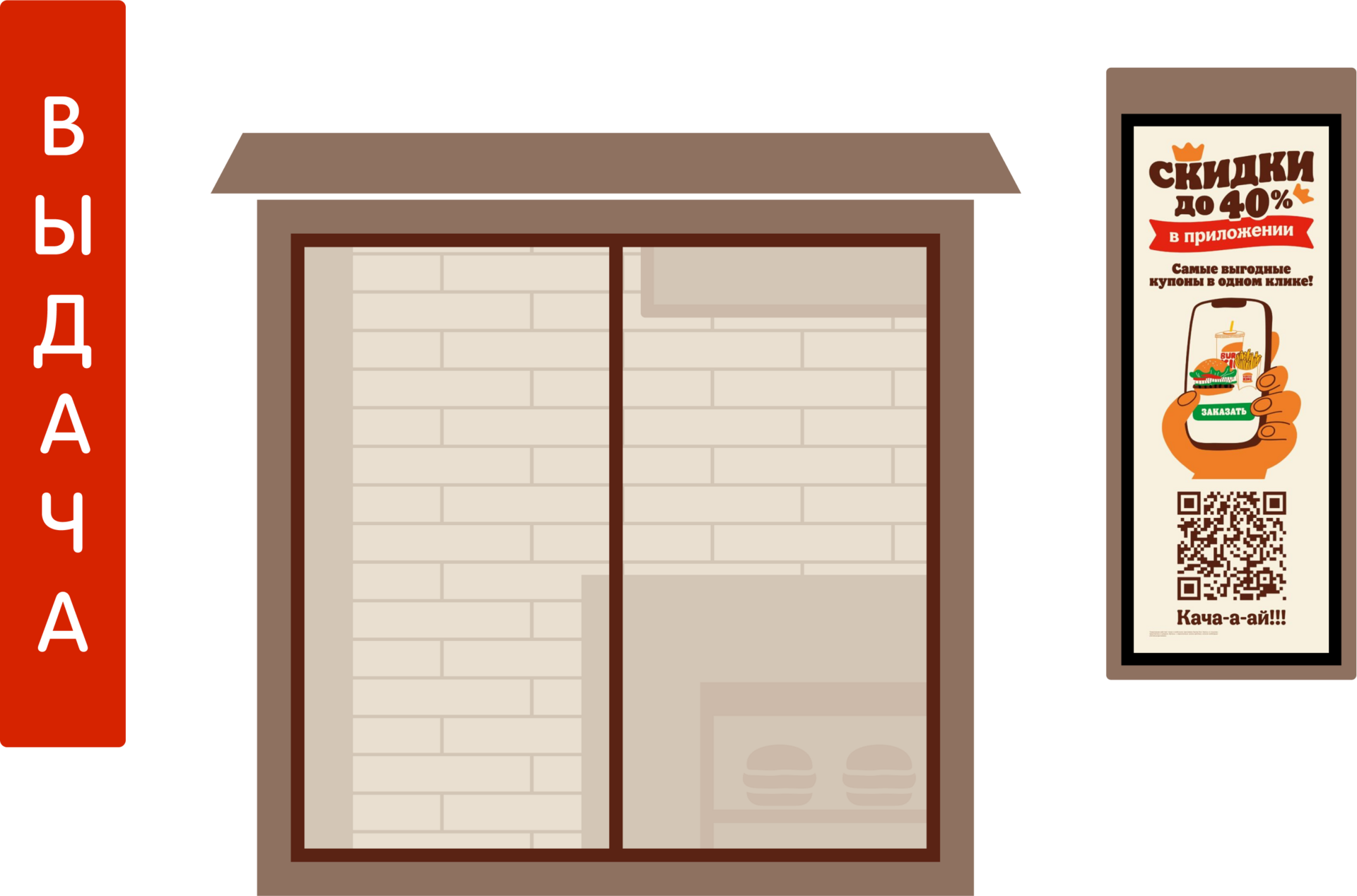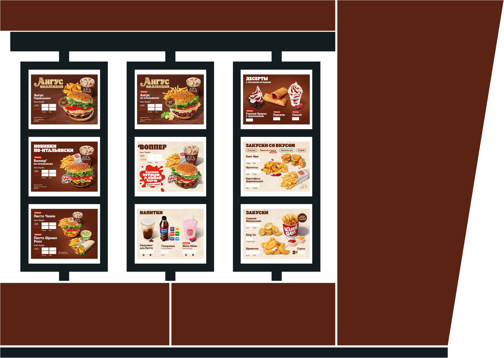 В режиме ожидания на экране стойки транслируются актуальные акции.